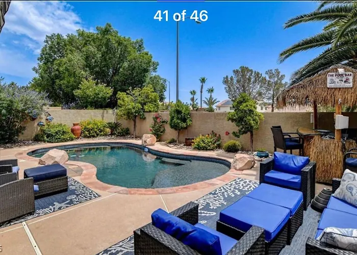 Diese Villa in Las Vegas liegt im Bezirk Summerlin, wo Gäste das Las Vegas Ice Center (nur 9 Minuten Fußweg von hier entfernt) besichtigen können. Zu den kulturellen Sehenswürdigkeiten in der Nähe gehört Sahara West Library and Fine Arts Museum, der 3 Kilometer von ist. Die Amazing Grace Vacation Home liegt 750 Meter vom Old Spanish Trail Park und in einer Entfernung von rund 10 Autominuten vom Rampart Casino.